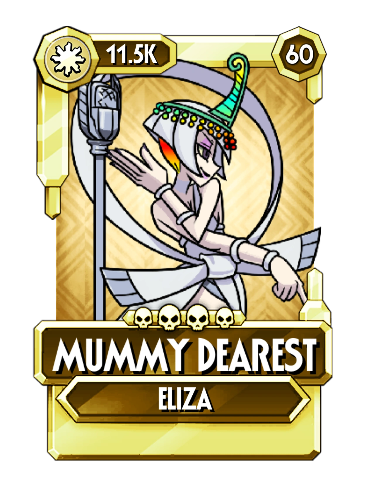 Due to the nature of Eliza's Marquee Ability and the utility her kit provides, it is suggested that players build Mummy Dearest as a Critless Variant